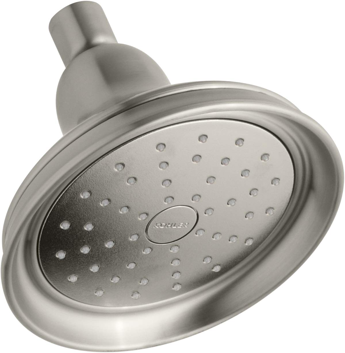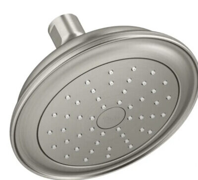 Description: Kohler Alteo single-function shower head in brushed nickel. Product and box in great shape; product discontinued by manufacturer. Shower arm not included.